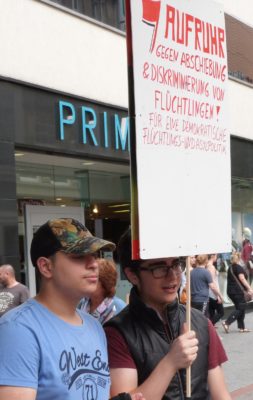 Für eine demokratische Flüchtlings- und Asylpolitik. Gegen die ansteigende Welle der Abschiebungen, die auch in unserer Stadt bittere Wirklichkeit sind. Betroffen sind Menschen, die für die Fluchtursachen nicht verantwortlich sind. Im Gegensatz zu den imperialistischen Länder, deren Vertreter beim G 20 Gipfel zusammen kamen, die Kriege führen u.a. in Afghanistan, Irak und Syrien. Länder, aus denen viele Flüchtlinge kommen, und die jetzt als sogenannte „Wirtschaftsflüchtlinge“ hingestellt werden.