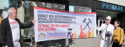 Die TeilnehmerInnen der Montagsdemo am 17.6.2019 bestärken den Bergleuten, sich nicht unterkriegen zu lassen. „Wir versichern Euch unsere volle Solidarität!“
